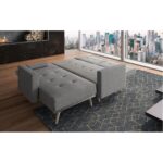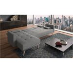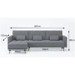 Canapé d´angle convertible avec fonction couchage (convertible) lit 160x187cmSiège rembourré Canapé convertible en lit d’appoint en inclinant les dossiers comme un clic-clac Méridienne modulable à droite ou à gauche Description technique :Revêtement en tissu gris. Structure en bois massif et panneaux de particules Assises et dossiers rembourrés en mousse de 50 kg/m3 Dimensions hors tout :Total : L 267 x P 137 x H 88 cm Lit : L 160×187 cm Emballage :Colis 1 : 165 x 114 x 27 cm 48 Kg Colis 2 : 163 x 84 x 27 cm 30 Kg