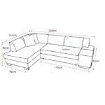 | Dimensions | Longueur totale : 268 cm – Longueur méridienne : 161 cm – Largeur 3 places : 93 cm – Largeur méridie |
