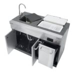 La partie Ultimate Entertainment a été conçue en acier inoxydable de haute qualité. Le plan de travail est en granit gris à la fois design et résistant. Elle est équipée d’un lavabo, d’une planche à découper en plastique, une glacière, un bac à déchets amovible et d’une double prise intégrée. Tous ces modules se combinent parfaitement à l’Ultimate Outdoor. N’hésitez pas à visualiser la vidéo qui vous donnera un aperçu du meuble.