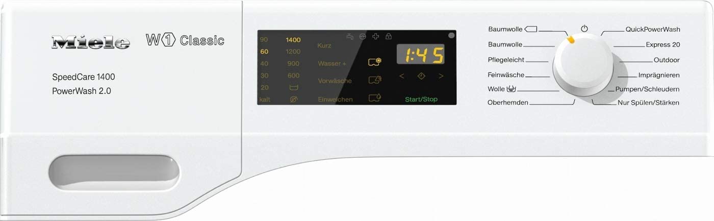 Grâce au W1 SpeedCare 1400 avec PowerWash 2.0 et au programme QuickPowerWash, vous obtenez une vraie propreté en moins d’une heure – et aussi très économe en énergie :
