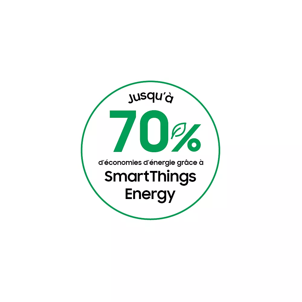 En connectant votre machine à laver à l’application SmartThings, vous pouvez contrôler votre consommation d’énergie mensuelle. Ce mode paramètre automatiquement votre appareil pour répondre à vos objectifs. Il vous permet de réaliser jusqu’à 70% d’économies d’énergie sur vos cycles de lavage, grâce à l’utilisation d’ecobubble™.