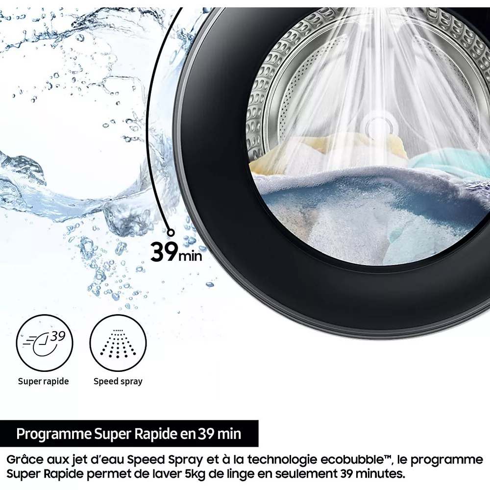 Avec ses nombreuses technologies et son cycle pour réduire les émissions de microplastiques, le lave-linge Samsung AI ecobubble™ 11kg WW11DB7B94GE va vous simplifier le lavage et vous aider à réduire votre consommation.