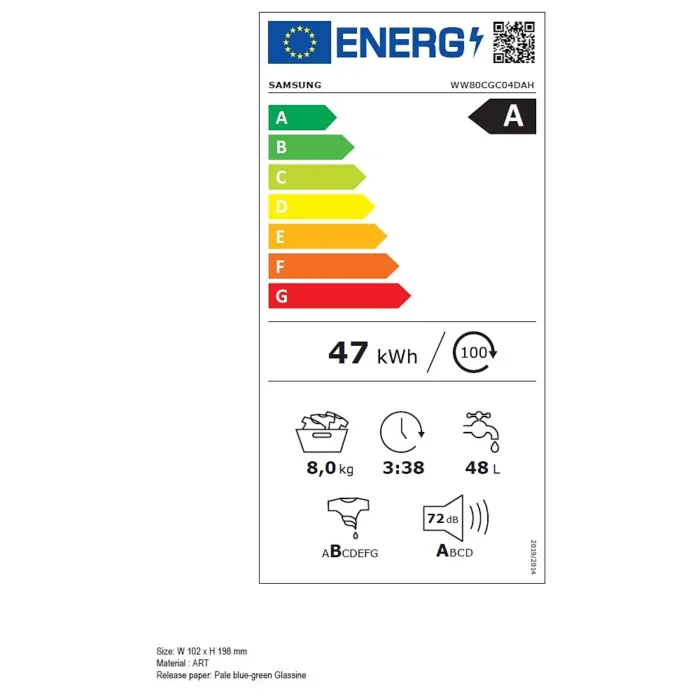 Lave-linge Samsung WW80CGC04DAH : Haute efficacité et soin du linge
