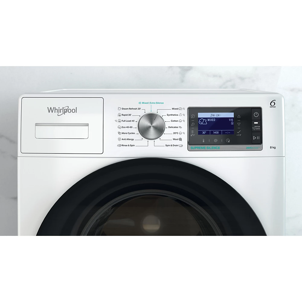 Lave linge hublot WHIRLPOOL W7X89B SILENCE FR (8kg) – Tambour 55L Label énergie A – Ultra silencieux 65dB Essorage élevé (1400 trs)