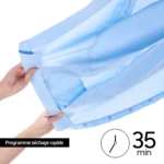 - Matière du tambour : inox, ou acier inoxydable, résiste parfaitement à l’humidité et ne rouille pas.