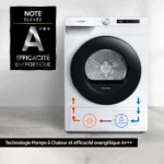 - Le + : sa technologie « HeatPump Samsung » respecte votre linge et permet de faire des économies d’énergie