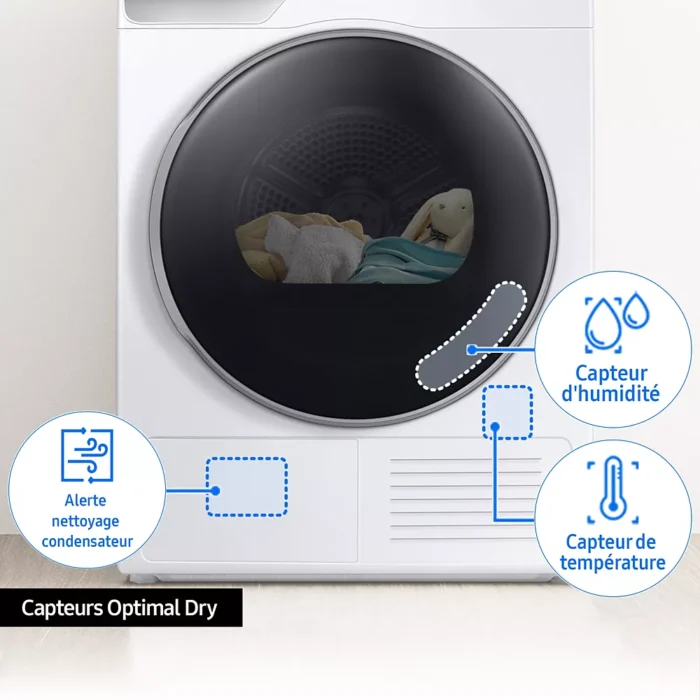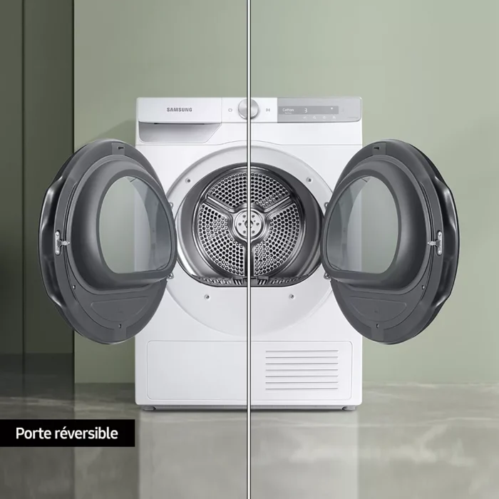 Sèche linge pompe à chaleur SAMSUNG DV90T7240BH Label énergie A+++ Capacité XL (9kg) – Tambour 115L Tambour inox – silencieux (63 db)
