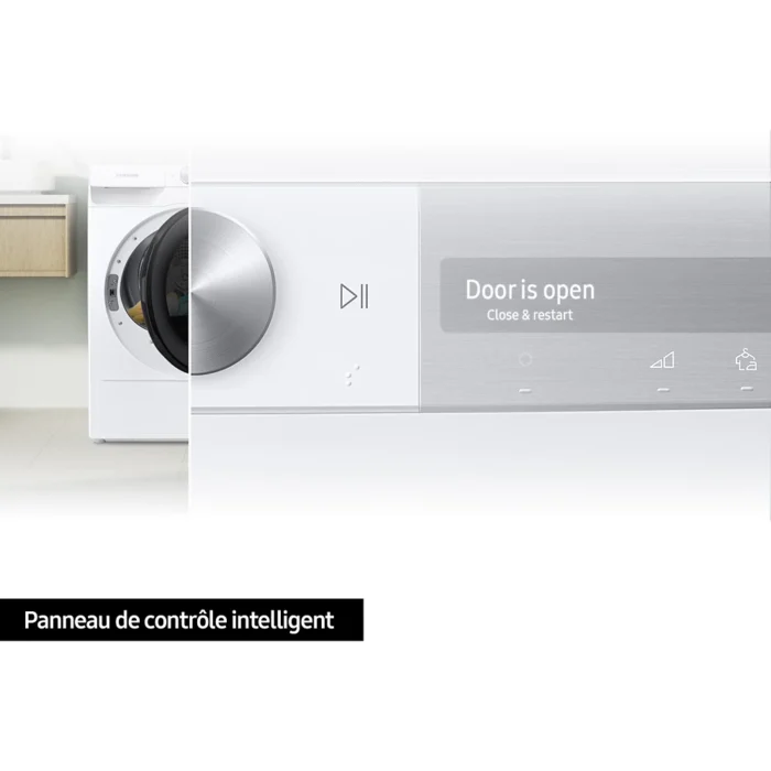 Le sèche-linge SAMSUNG DV90T7240BH possède un panneau de contrôle intelligent conçu pour visualiser le temps restant en un coup d’oeil, lancer un cycle de séchage et même communiquer avec votre lave-linge Samsung compatible pour optimiser le séchage. Son interface épurée s’utilise très simplement.