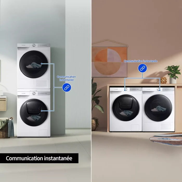 Gagnez du temps lors du séchage de votre linge avec le sèche-linge haute performance SAMSUNG DV90T7240BH doté d’un système de pompe à chaleur.